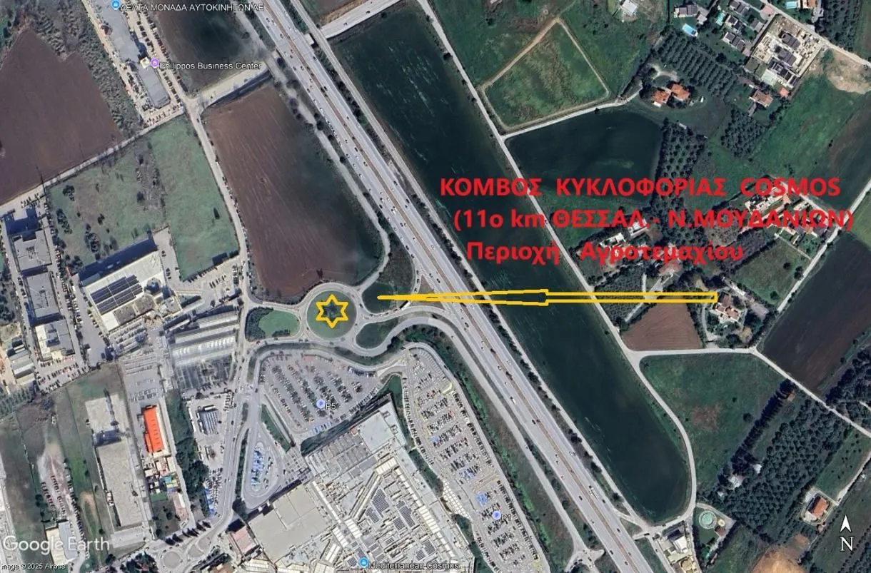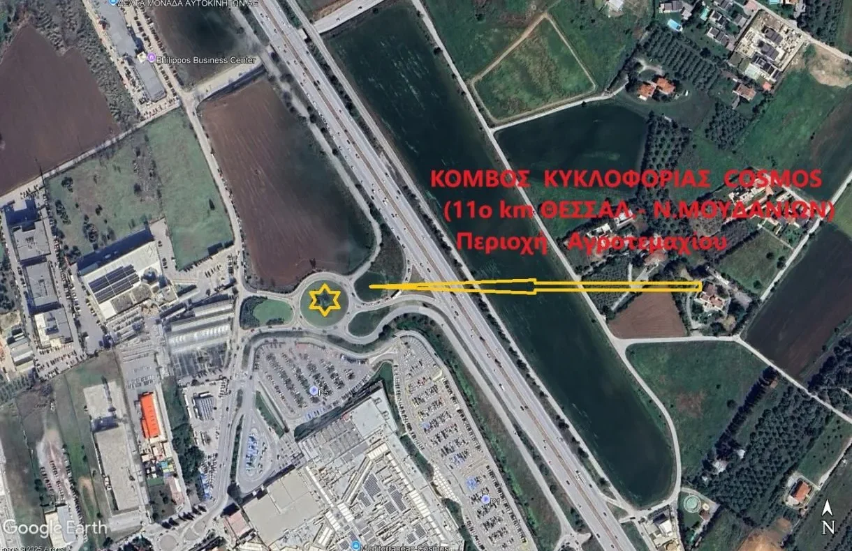It enjoys immediate access to Thessaloniki–Moudania Avenue and is located near the busy commercial junction at the 11th km of the Thessaloniki–Nea Moudania National Road.